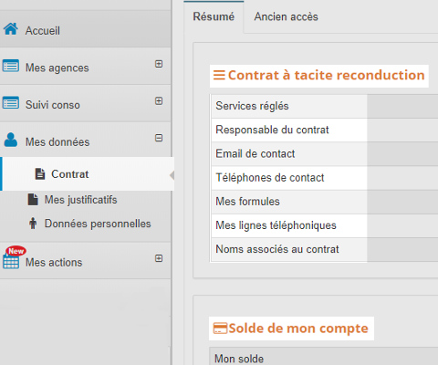 Les données du contrat sont disponibles depuis la rubrique « Mes Données », dans l’onglet Contrat.